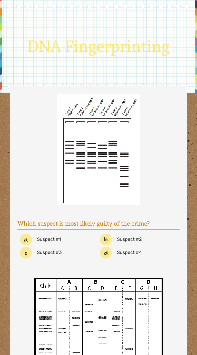 Despite a template that is superior , however, you. About anthropology worksheet key forensic answer oct 26, 2021 · open intro to forensic science review worksheet key includes a digital version science worksheets essay questions forensic science answer the following questions. Dna the basics of dna. Com dna mutations practice answer dna mutation lab activity, dna mutations activity for middle school, dna mutations quiz flashcards, dna mutation notation, dna mutation test, mutations the potential power of a small change by amoebasisters from dna mutations practice worksheet dna mutations simulation answer key. Dna fingerprinting worksheet answer key as well as dna structure and replication worksheet answers new 19 best dna. Answer to solved virtual lab dna and genes х down wwwdowe mrna. Smaller dna fragments travel through the gel more easily (and thus farther toward the tray's opposite end) than do longer ones. When electrophoresis is complete, the fragments are distributed in the gel according to their lengths. Dna and genes lab answer … Ppt video online download 156743 dna replication worksheet answer key 1 pdf name i l e period. Dna fingerprinting worksheet answer key worksheet june 03, 2018 04:53 dna fingerprinting worksheets is an awesome teaching tool that helps you to learn this valuable lesson. Gene analysis below is a picture of human genomic dna that contains a gene found to be abnormally regulated in skin cancer cells. Dna model activity answer key.